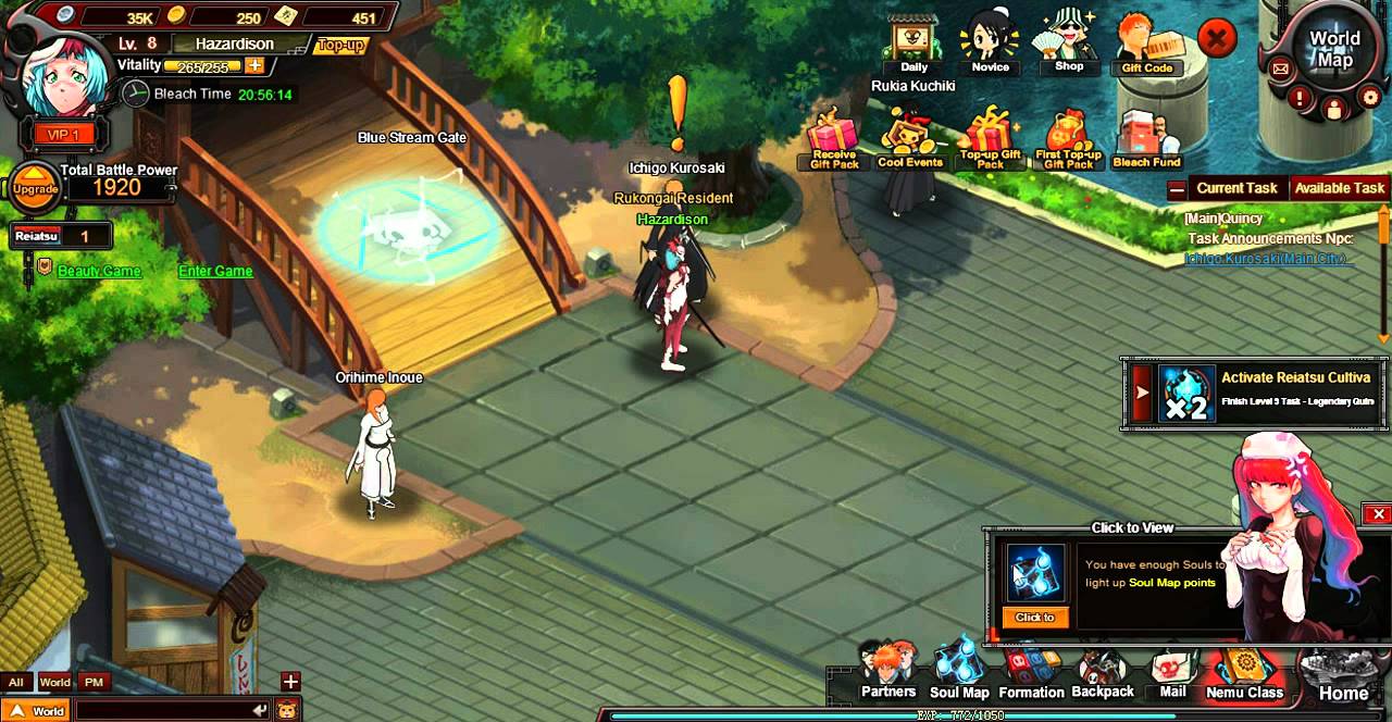 Как и всякая другая манга, Bleach выводит на первый план обычного японского школьника, который обязан тянуть лямку главного героя до конца сериала, однако в случае с Bleach Online дело школьниками уже не ограничивается. В игре нам предлагают восстать из мертвых и в состоянии полной амнезии (но со способностями настоящего шинигами) собрать под своим крылом готей (отряд таких же головорезов) и ни много ни мало, спасти Сэйретей – столицу проводников душ.