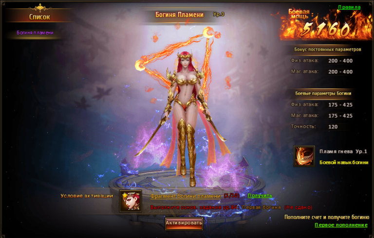 Эта браузерная рпг предполагает, что за героем постоянно следует богиня, благодаря покровительству которой не только увеличивается его общая боевая мощь, но и растут постоянные параметры и характеристики.