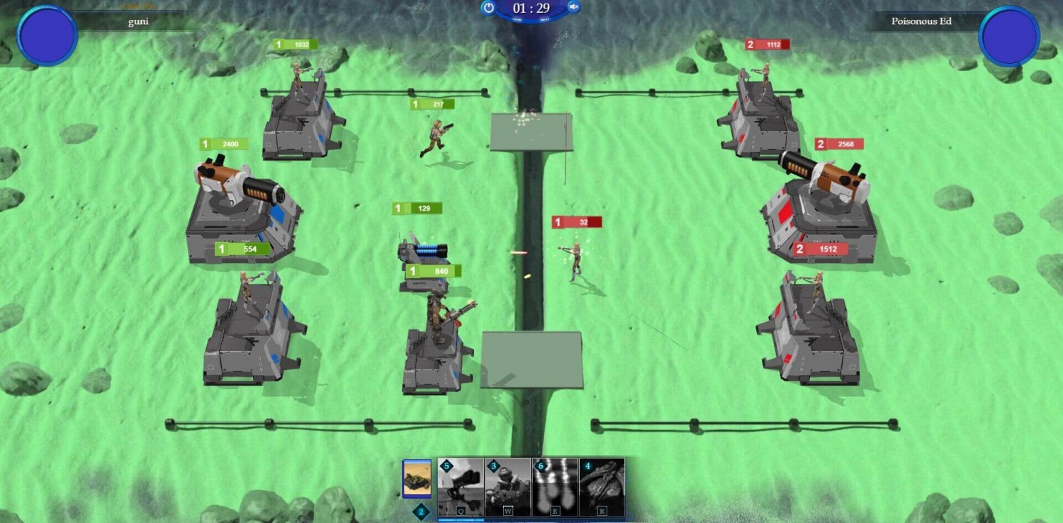Участникам требуется использовать карты из колоды, именно они содержат тех юнитов и суперспособности. Башни атакуют врагов, а войска продвигаются в автоматическом режиме к башням и расстреливают их.