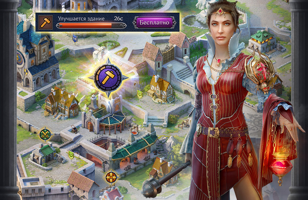 Просторы вселенной Throne: Kingdom at War неустанно расширяются. Это и не удивительно, ведь геймеры активно ведут застройку, причем здания уникальны, они имеют различный внешний облик, функциональное назначение и характеристики. Здесь можно найти фермы и замки, каменоломни и мельницы, оборонительные сооружения. Вид напрямую зависит от достигнутого уровня. Так, заброшенный склад может стать эффективной лесопилкой, со временем принося ощутимый доход. Совершенствуйте и развивайте все составляющие, чтобы доказать свое превосходство.