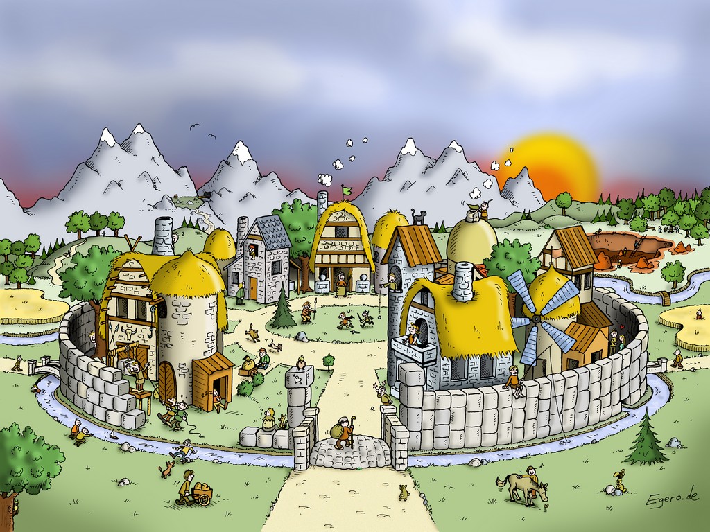 Создайте план развития и начинайте свою деятельность с добычи полезных ресурсов, которые пригодятся в возведении построек, свершении открытий, создании войска и ведения торговой деятельности.