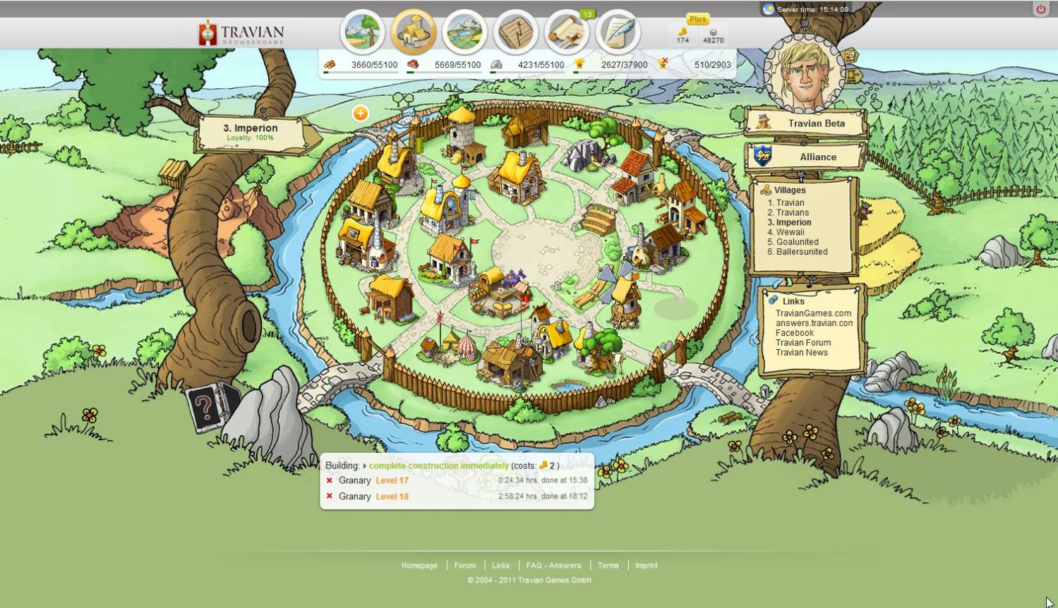 Геймеры имеют возможность отправиться во времена поздней античности, на восточные окраины Римской империи. Вам предстоит развить собственное государство, способное держать оборону от вражеских нападок, а также раздобыть древний артефакт, принадлежащий расе Натаров. С его помощью вы сможете создать собственное чудо света, и максимально его развить, достигнув сотого уровня. Одним из преимуществ Travian является то, что вы сможете играть бесплатно, используя свой браузер. Вас увлекут сложные и при этом невероятно увлекательные задания, которые необходимо выполнять, в процессе создания собственной империи.