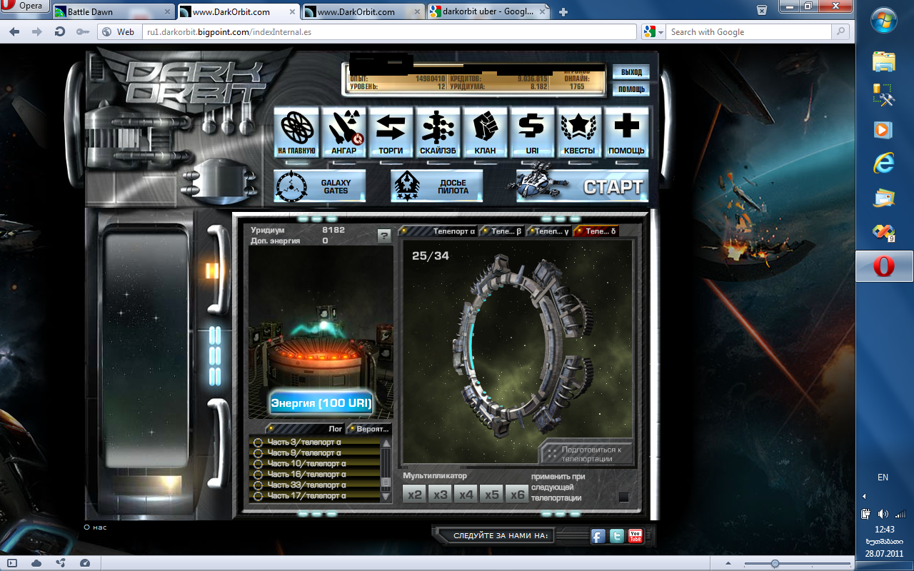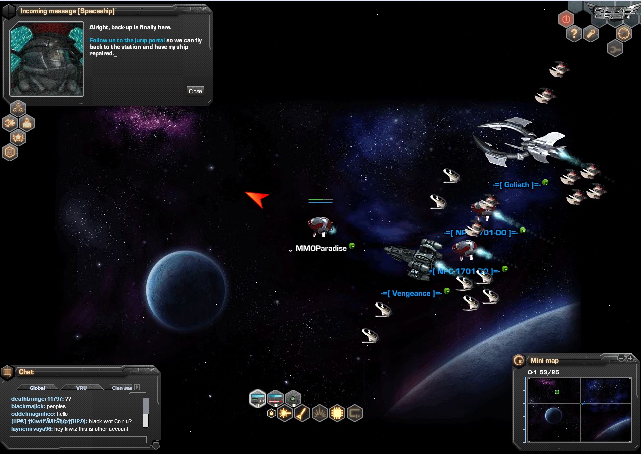 Одна из самых ярких современных браузерных игр с многопользовательским режимом. Дарк Орбит увлечет вас в темные просторы космоса, и заставит понервничать, при выполнении сложных задач. Игроделы студии Bigpoint, создавшие DarkOrbit Reloaded, неустанно модернизируют продукт, делая его еще более масштабным и увлекательным. Последнее обновление касалось графической составляющей, благодаря чему проект теперь полностью перешел на движок с трехмерной графикой. Не зря игра заслужила звание лучшей. Стоит отметить, что из-за графических модернизаций, привычная картинка стала восприниматься абсолютно иначе.