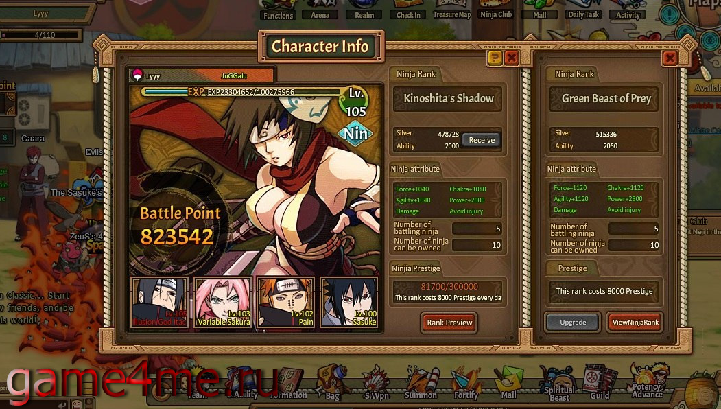 Правда, чтобы собрать хорошую команду, придется здорово поработать. Высокий ранг ниндзя, необходимый для найма героев, можно добыть несколькими способами: выполнением ежедневных заданий, прохождением сюжетных квестов, а также боями на Арене – основным источником Престижа. А еще юному падавану придется регулярно развивать чакры, добывать артефакты в Испытаниях, прокачивать хвостатых демонов-питомцев и искать сокровища. Отдельным строем стоят так называемые Вызовы – инстансы, пройти которые может далеко не каждый. Для того чтобы победить местных обитателей, недостаточно расставить своих подопечных в случайном порядке – придется изучать повадки противника, его скиллы и таланты.