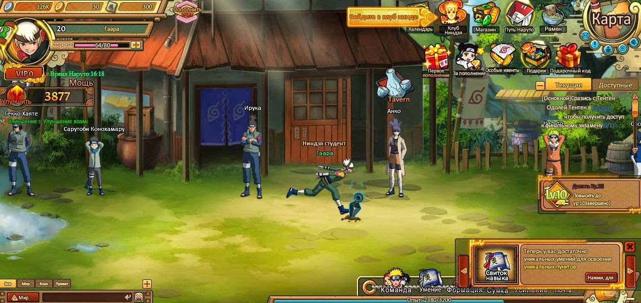 Ninja World Online – красочная браузерка, созданная по мотивам популярной манги Naruto. Деревня Скрытой Листвы, Саскэ Утиха, Орочимару, Хокагэ, Дзирайя… если для вас эти слова не пустой звук, то добро пожаловать в параллельный мир, где можно не просто наблюдать за событиями сериала, а стать их непосредственным участником.