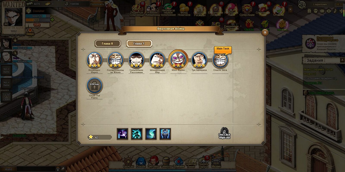 Сразу предупреждаем: белых и пушистых героев в One Piece Online в принципе нет. Безалаберная атмосфера континента Ред-Лайн породила сотни проходимцев, которые готовы на все ради денег и славы. Казино, дуэли на ножах, постоянные перестрелки и абордажи кораблей – примерно так выглядит ежедневное расписание каждого нормального пирата.