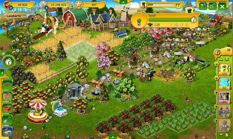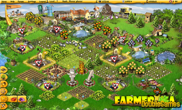 В распоряжение игроков предоставляется большое количество рычагов управления хозяйством. Ветряные мельницы, емкости с водой, кучи навоза – кому-то подобные элементы геймплея могут показаться издевательством, но только не тому, кто хотя бы один раз задался целью произвести на своем поле нечто достойное уважения. В Farmerama вы можете вырастить прекрасную цветочную клумбу, волшебный сад или даже заняться животноводством, а по мере продвижения, ваше хозяйство будет расширяться как вглубь, так и вширь.