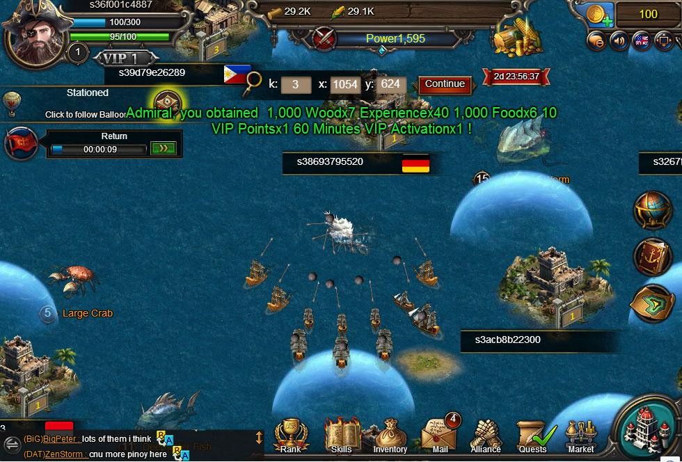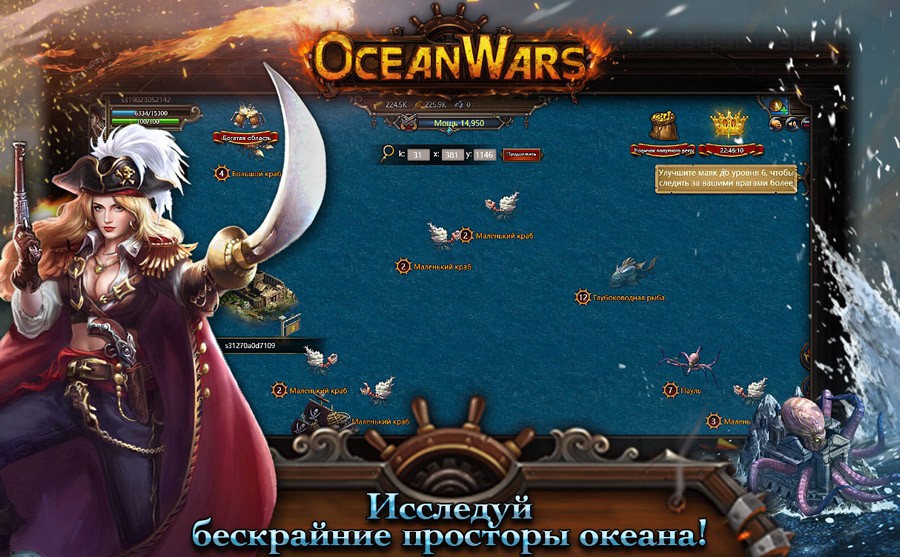 Флоты заказываются оптом в таверне, ресурсы добываются прямо на острове, а также путем уничтожения разнообразных морских тварей и грабежа соседских островов. Для защиты собственного форта игра предлагает богатый арсенал мин, сетей и рифов. Фактически, Ocean Wars – этот тот же Travian, только в море. Геймплей вторичен, графика средняя, видов кораблей очень мало. Из плюсов – дух пиратской свободы и вменяемый донат.