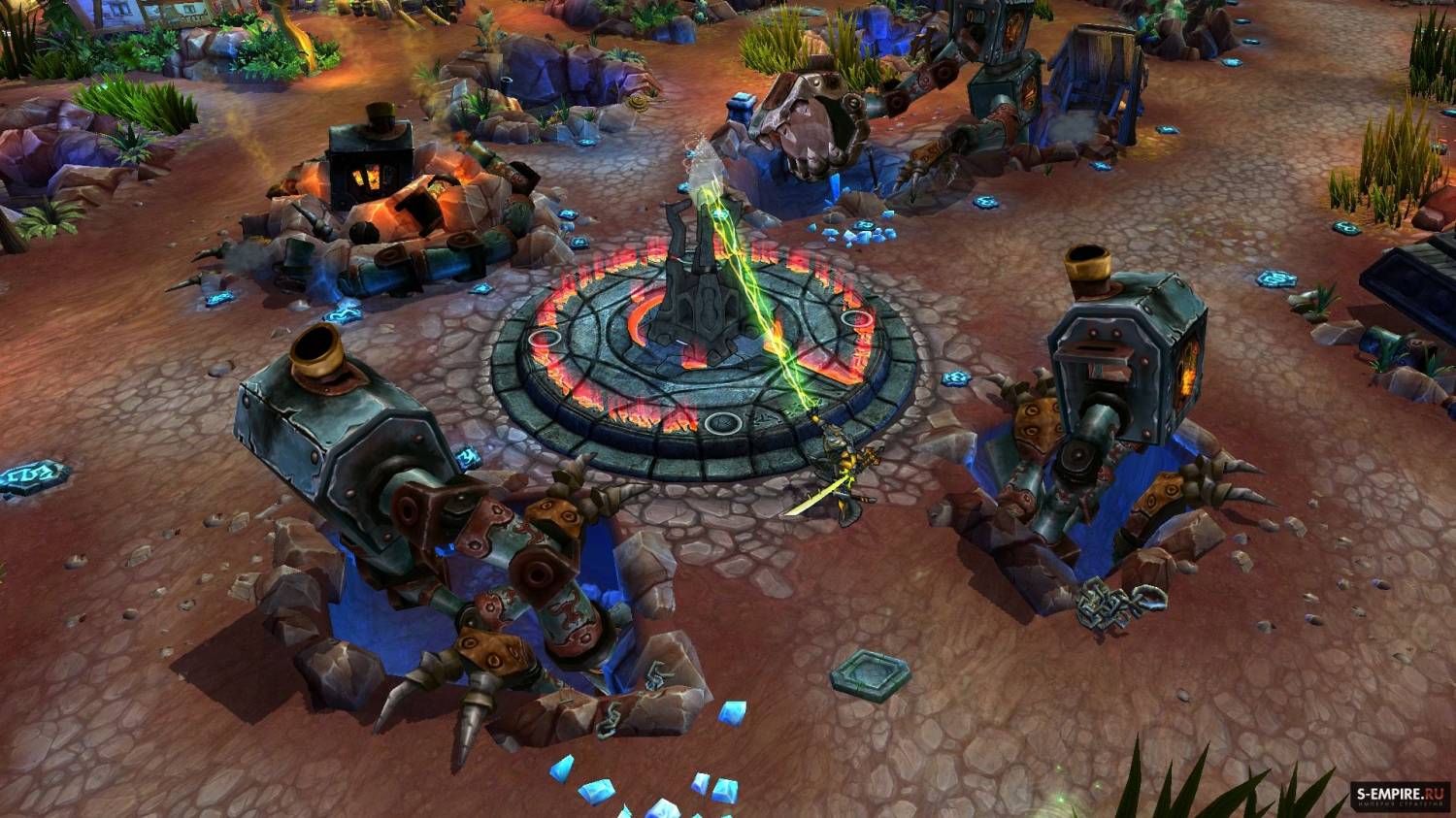 Важное отличие League of Legends от DotA – наличие нескольких карт. Классический режим «пять на пять» в локации The Summoner’s Rift, игра «трое на трое» на The Twisted Treeline и новая игра на карте Dominion. Последняя игра предполагает борьбу за контрольные точки-порталы, расположенные по окружности.