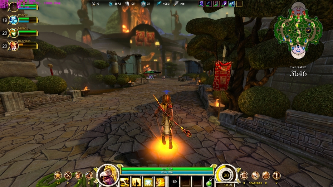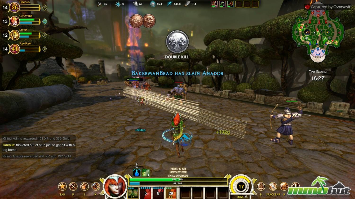 Впрочем, есть в SMITE и свои особенности (помимо оживших богов, конечно). В отличие от той же DotA, здесь нет нужды объединять несколько предметов в один при помощи рецептов. Вместо этого в игру была введена система апгрейдов, так что купив, допустим, перчатки за 500 монет, вы их можете проапгрейдить, заплатив для этого дополнительную сумму. Другое дело, что для покупки всего комплекта артефактов начального капитала никак не хватит. Денежку придется зарабатывать, в основном убийством миньонов. Заработанное моментально просаживается на базе, где можно купить не только экипировку, но и новые способности (щит, ускорение и т.д.).