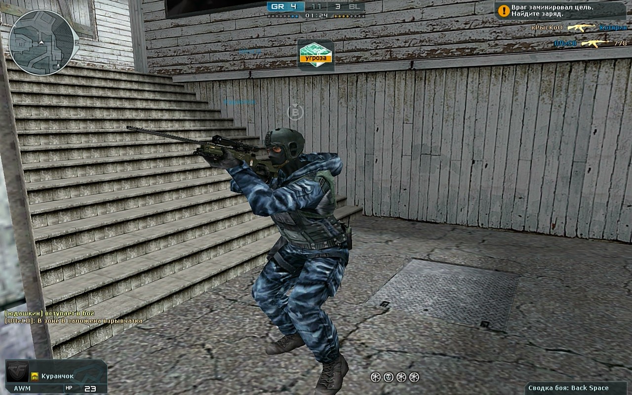 Играл в Crossfire я совсем немного, но могу сделать выводы и подметить некоторые хитрости. Вот мы зашли в комнату и начали играть. Если вы зашли в первый то в начале игры жмем на "~" и перед нами открывается карта. Вообще, изучение и знание карт тоже очень пригодится. Так вот, перед нами соперник (сразу говорю, что пули летят рандомно даже при проклике), стреляем быстрыми прокликами или зажимом в тело или в шею, не забываем стрейфиться (бегать из стороны в сторону). При стрельбе на больших расстояниях используем прицел. Зажимать в Кроссфайере можно, но разницы от проклика не будет. Зажимать лучше в крайних ситуациях. Что касается тактической стороны, то стараемся не рашить. Чаще используйте дымовые, слеповые гранаты. Они играют огромную роль в игре.