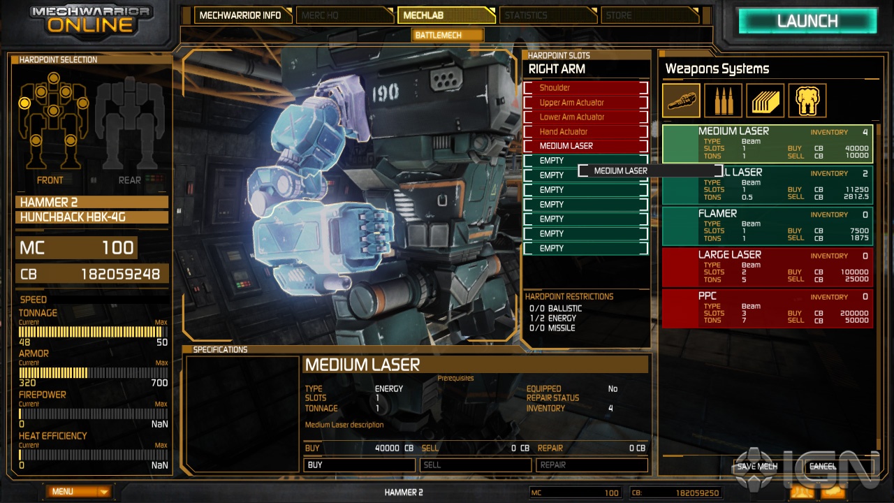 Большое внимание разработчики уделили системе совершенствования мехов. В мехлабе вы можете создать сотни вариантов одного и того же меха, в зависимости от вашего стиля игры, климатических условий планеты и боевых задач. Навесить на своего «стального коня» десяток пушек и лазеров не получится – вы упретесь в потолок веса, а также заметно нарушите баланс между тепловыделением и снаряжением, что приведет к перманентному перегреву меха в бою.