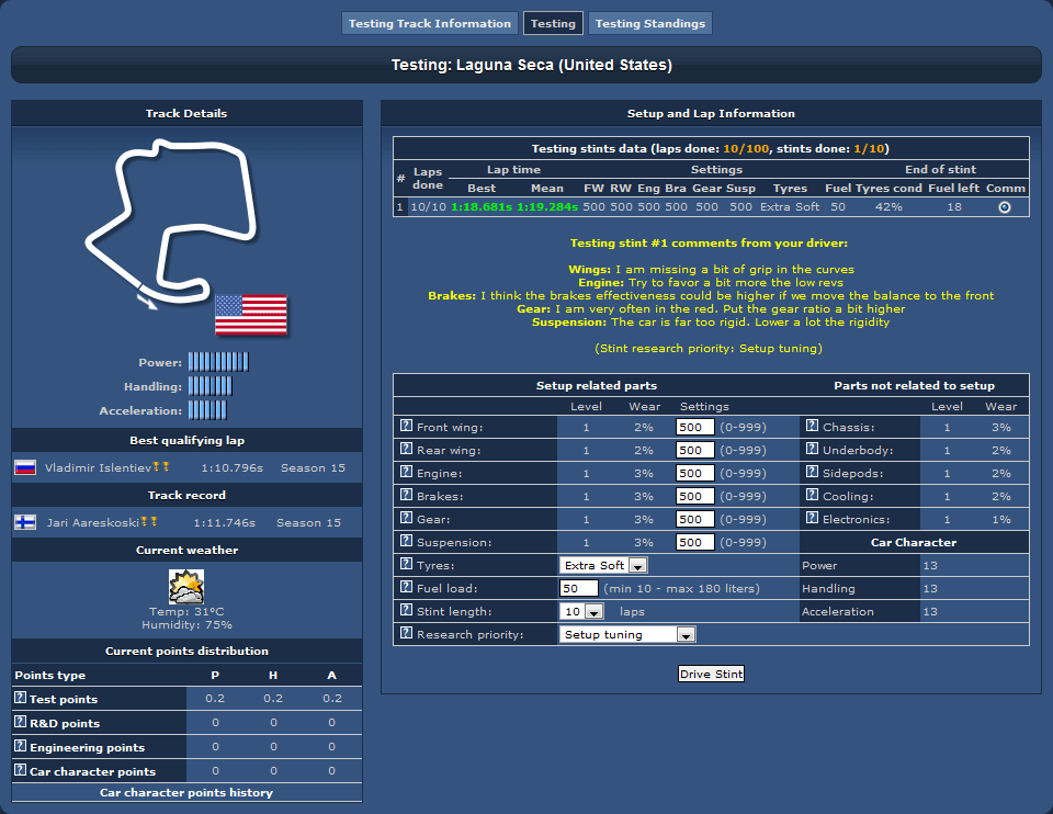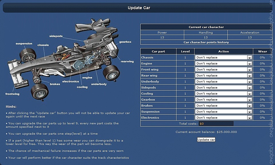 Сезон в Grand Prix Racing Online состоит из 17 гонок, которые проходят по вторникам и пятницам в режиме реального времени. Поэтому у вас есть возможность обсуждать ход Гран-при с другими игроками так же, как и создавать с ними собственную эффективную команду.