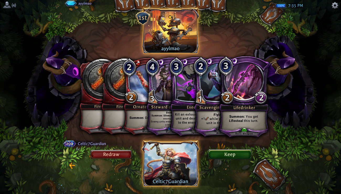 Draft, Forge, Ranked, Gauntlet – четыре основных режима игры. В Gauntlet и Forge игрок сможет заработать себе серебряные сундуки, в которых находится игровой лут: улучшения, карты и монеты. Сами режимы представляют из себя PvE схватки. Оставшиеся два режима – PvP сражения между пользователями. В режиме Draft в награду дают платиновые сундуки, содержащие редкие легендарки и улучшения. Однако, этот режим является дорогим. За вход пользователю придется заплатить, немного не мало, а 5 тысяч игровых монет.